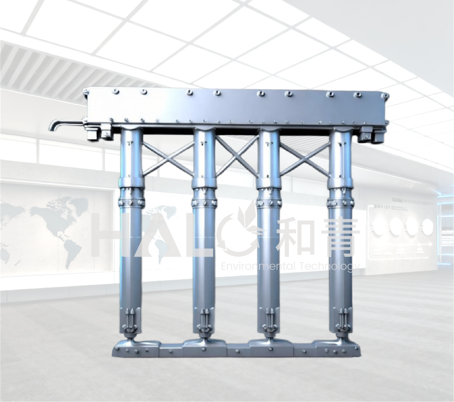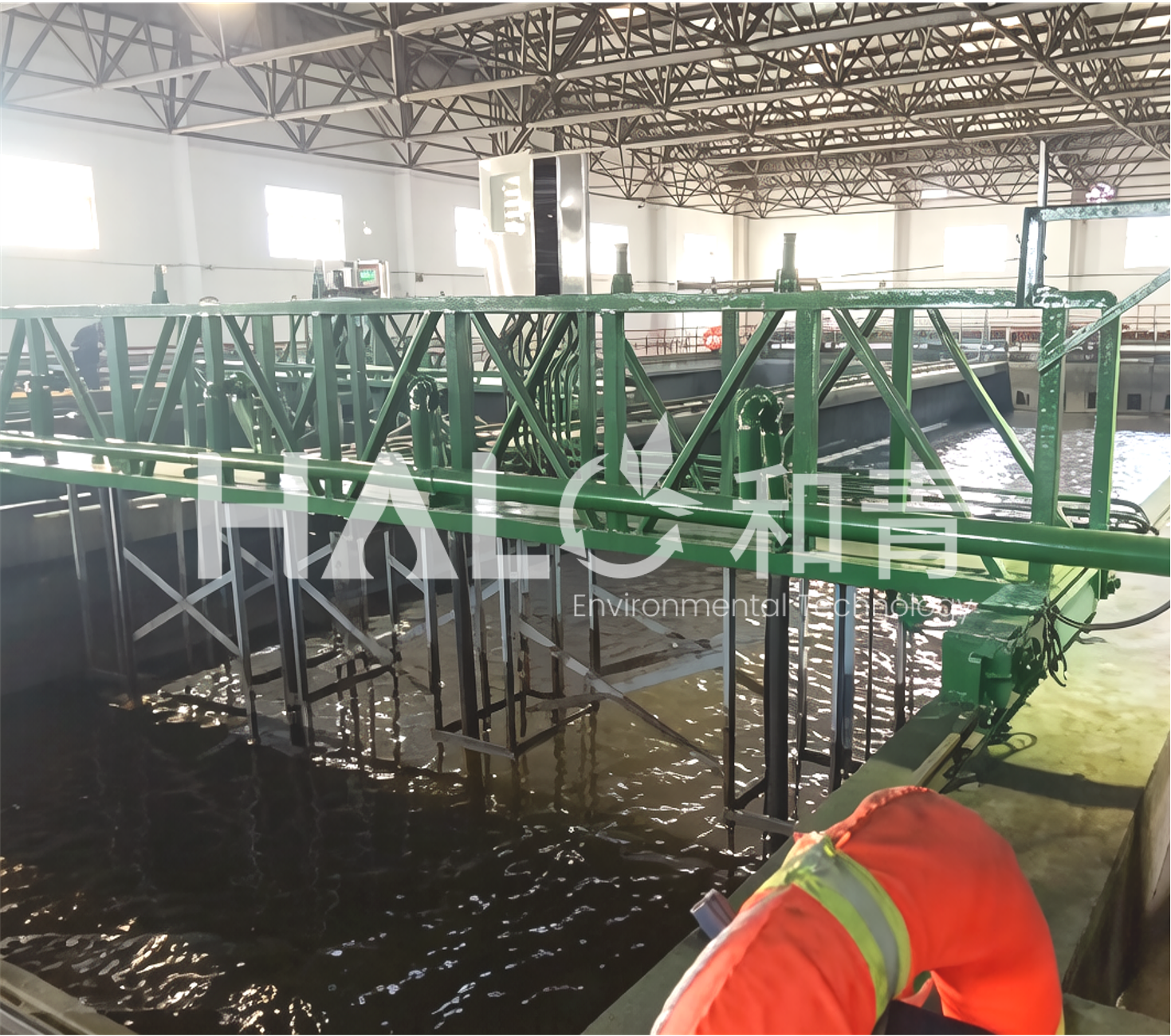 (1)智能自适应刮吸泥系统 核心功能:加装“电动自控万向节升降装置”,使刮臂可根据池底淤泥堆积量,实时自动调整角度与高度,确保刮板始终紧贴起伏不定的淤泥表层。 解决痛点:从根源上避免淤泥在刮臂底部包裹沉积,杜绝因卡滞导致设备倾斜/停机的风险。 | (2)多重安全防护与预警 运行保护:行走电机设有过电流停机保护,万向节升降装置设有过扭保护。 智能预警:当保护触发时,系统立即启动声光告警,提醒运维人员及时干预,保障安全。 | (3)排泥能力全面增强 泵组扩容:在原有基础上新增两台排泥泵,排泥能力提升一倍,应对高负荷排泥需求。 管道升级:扩大排泥管道口径,提高排泥流速与效率,缓解池内淤积。 |