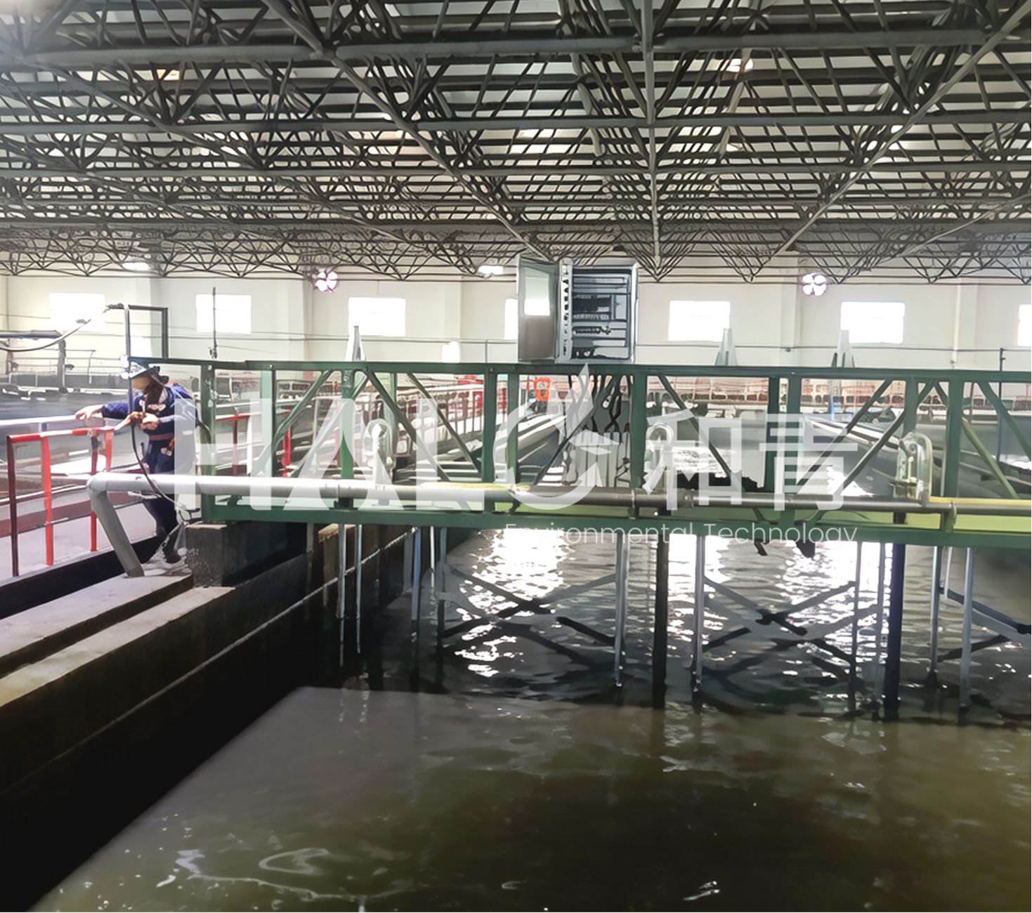 (1)智能自适应刮吸泥系统 核心功能:加装“电动自控万向节升降装置”,使刮臂可根据池底淤泥堆积量,实时自动调整角度与高度,确保刮板始终紧贴起伏不定的淤泥表层。 解决痛点:从根源上避免淤泥在刮臂底部包裹沉积,杜绝因卡滞导致设备倾斜/停机的风险。 | (2)多重安全防护与预警 运行保护:行走电机设有过电流停机保护,万向节升降装置设有过扭保护。 智能预警:当保护触发时,系统立即启动声光告警,提醒运维人员及时干预,保障安全。 | (3)排泥能力全面增强 泵组扩容:在原有基础上新增两台排泥泵,排泥能力提升一倍,应对高负荷排泥需求。 管道升级:扩大排泥管道口径,提高排泥流速与效率,缓解池内淤积。 |